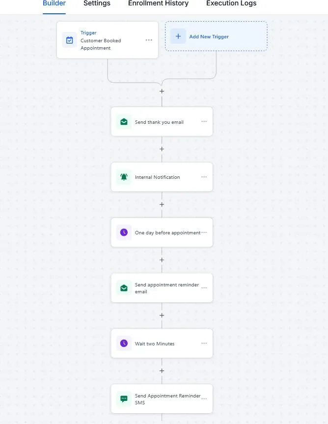 While you're focused on your clients, your automated system is working behind the scenes, following up with new leads, confirming bookings, reminding clients about appointments, and even replying to missed calls. With just a few clicks, you can set up smart workflows that handle your daily tasks, so you never fall behind — and never miss a client again.